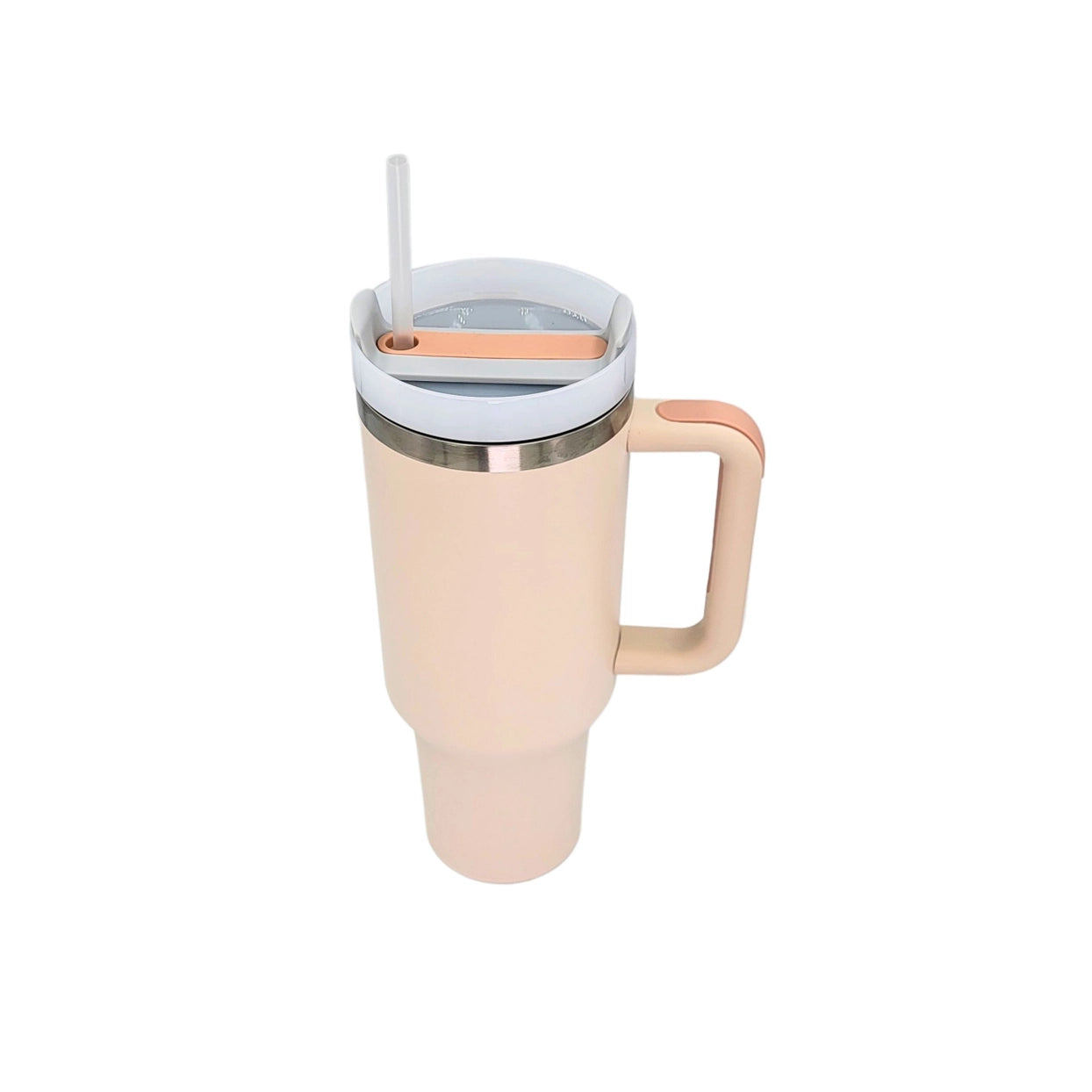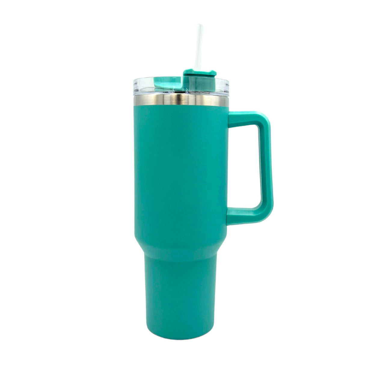 Engraved In The USA 40 oz handled tumbler with a durable powder coated color that includes a straw. All tumblers are engraved to insure the writing will never peal or fade. Please include the custom saying you would like.