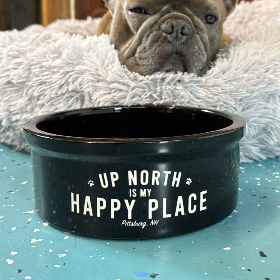 Ceramic 7" pet feeder bowl perfect for all of the good boys and girls! Feed your favorite dog, pup, puppy, kitten, cat or even the kids with this fun bowl!! Etched with our Up North branded "Up North is My Happy Place" logo. Made New Hampshire.
