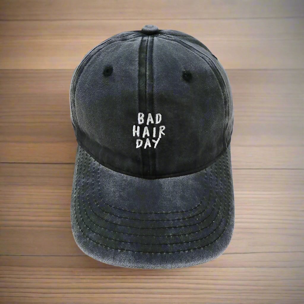 Bad Hair Day Embroidered Washed Baseball Cap -Cute Calligraphy on washed hat. Golf Dad Hat Adjustable Cotton Hats Men Women Unconstructed Plain Cap. Made of 100% cotton. It is Lightweight, Breathable, soft premium cotton fabric. Gift for your families, friends, and lover. Classic basic design and vintage washed look. You can use it for your usual stylish activities. A Must Have Item.