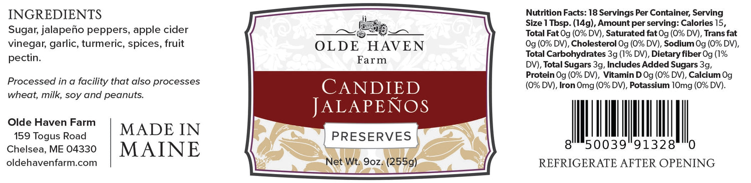 • Made in United States • Ingredients: Sugar, jalapeño peppers, apple cider vinegar, garlic, turmeric, spices. • SKU: 850039913280