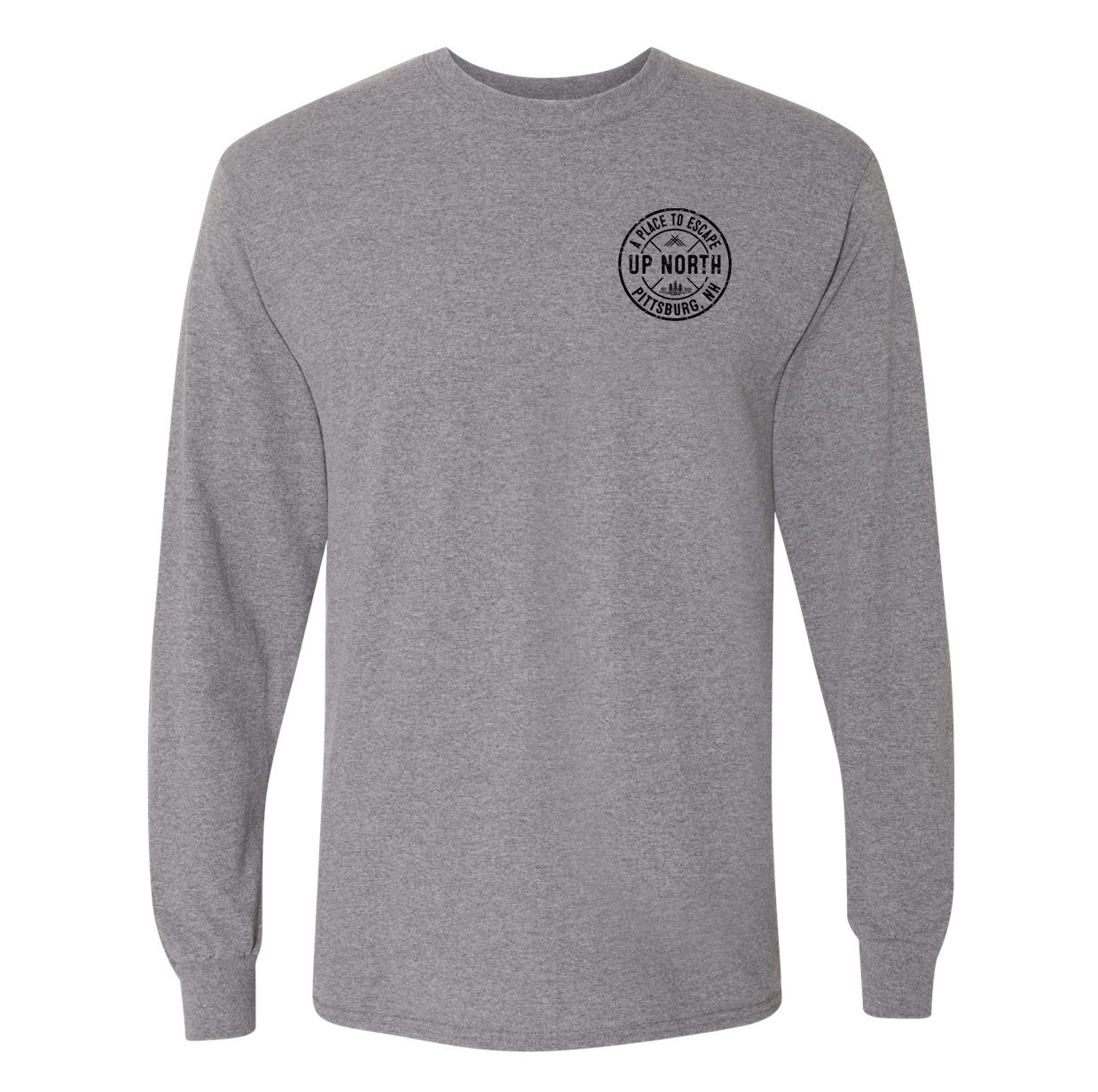 Features an Up North Logo at left chest. This adult unisex long sleeved t-shirt is the perfect addition to any wardrobe! Features a unique circle Up North logo at left chest.