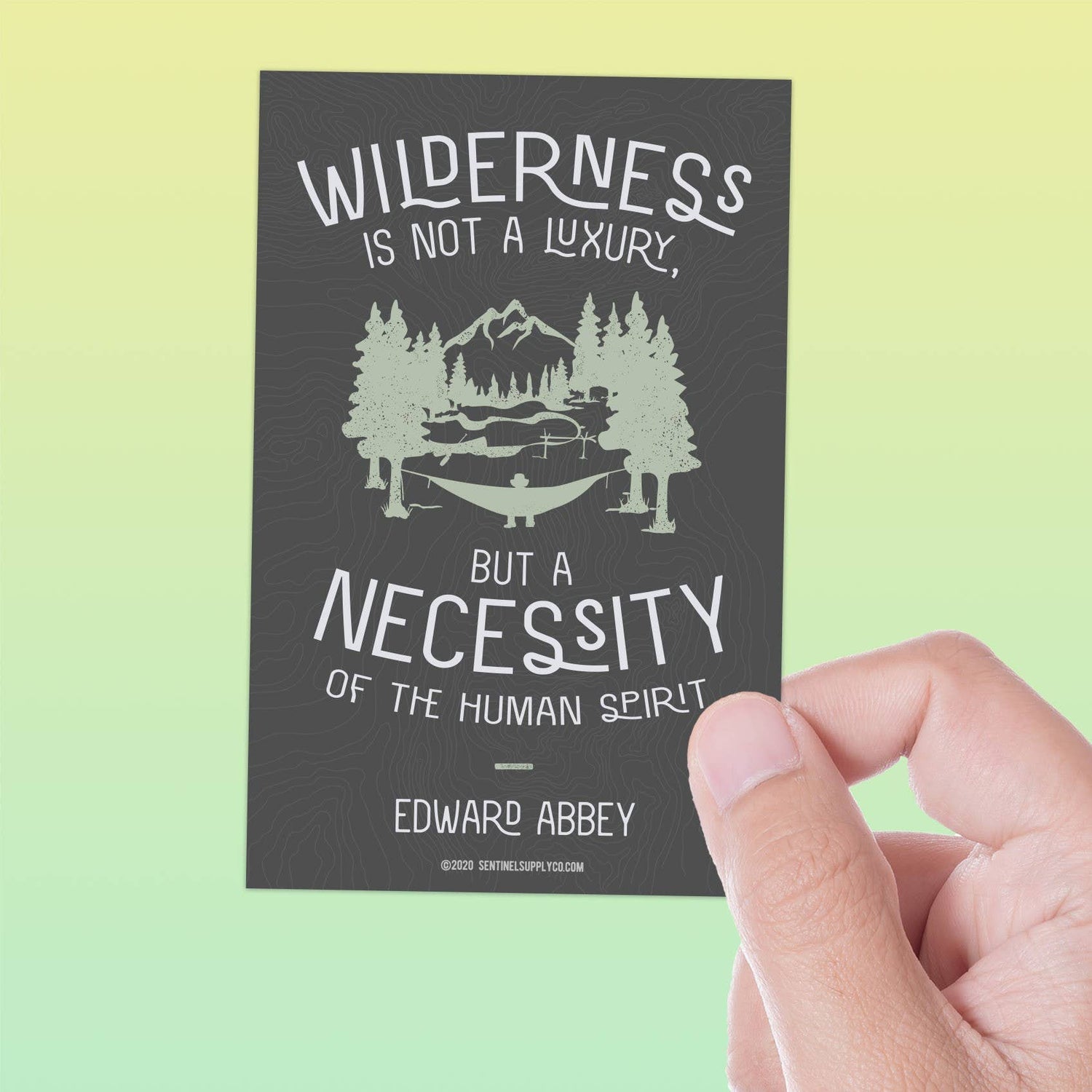 This beautiful nature quote from the famous environmentalist Edward Abbey is a great reminder to prioritize our time in the great outdoors and preserve the wild for future generations. Featuring a relaxing mountain lake scene, this simple camping sticker will be daily inspiration to stay wild and go explore.