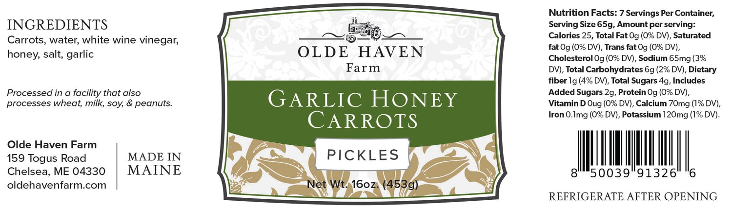 • Made in United States • Ingredients: Carrots, water, white wine vinegar, honey, salt, garlic. • SKU: 850039913266