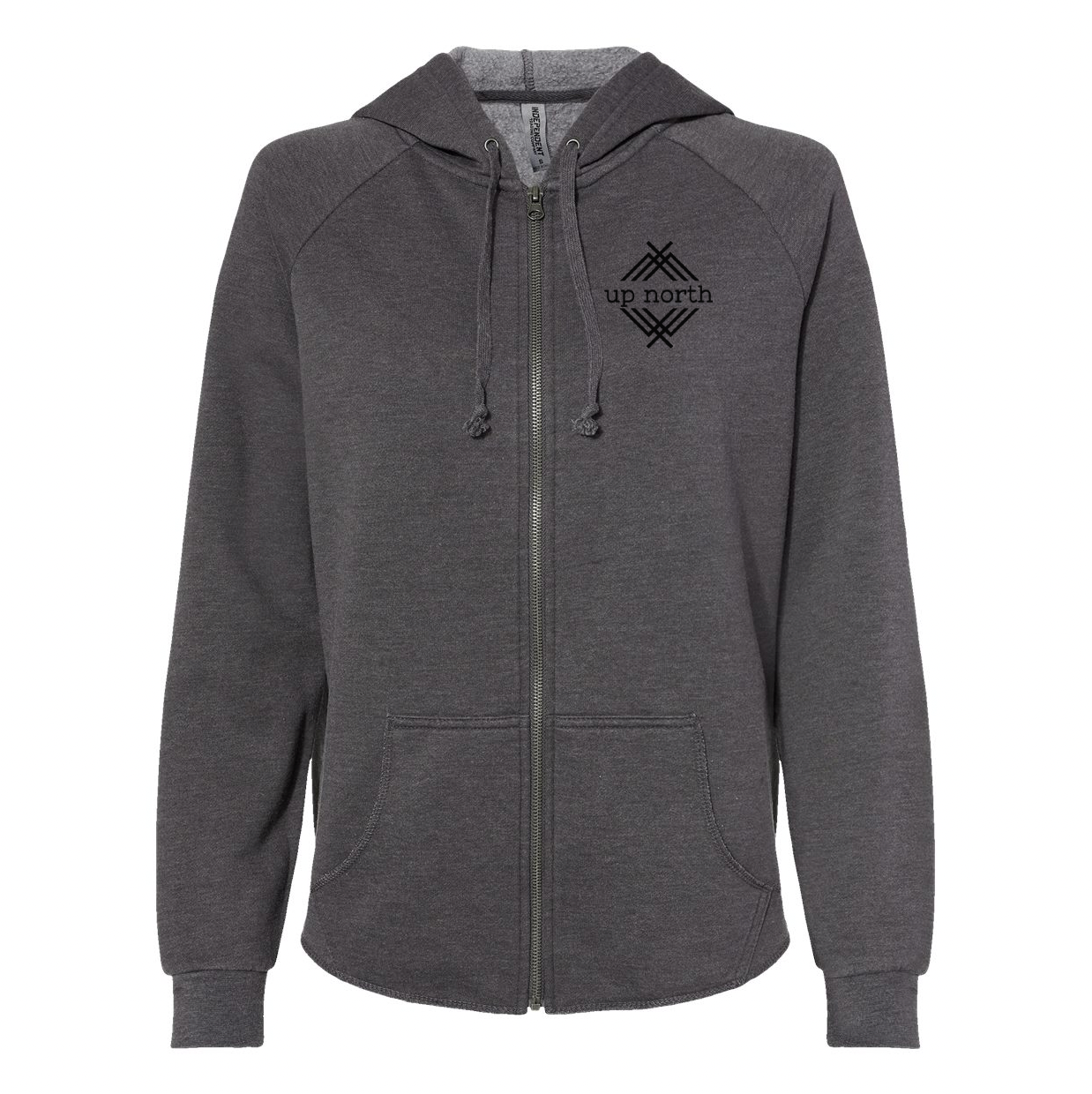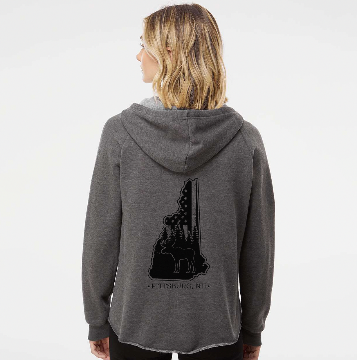 Ladies Hoodie, NH Flag Treeline & Moose - Dark Grey