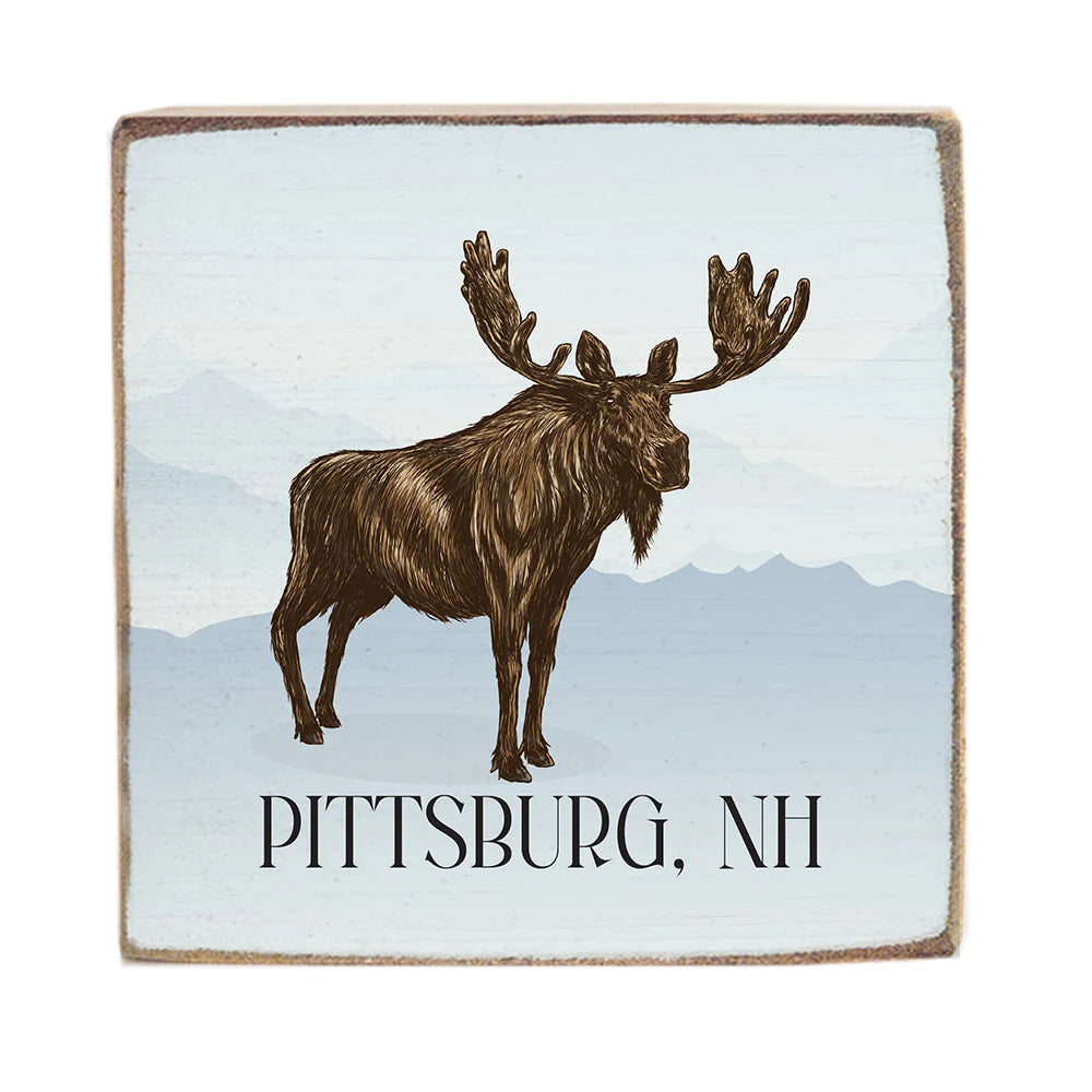 Moose Pittsburg, NH - Square Wood Block Sign