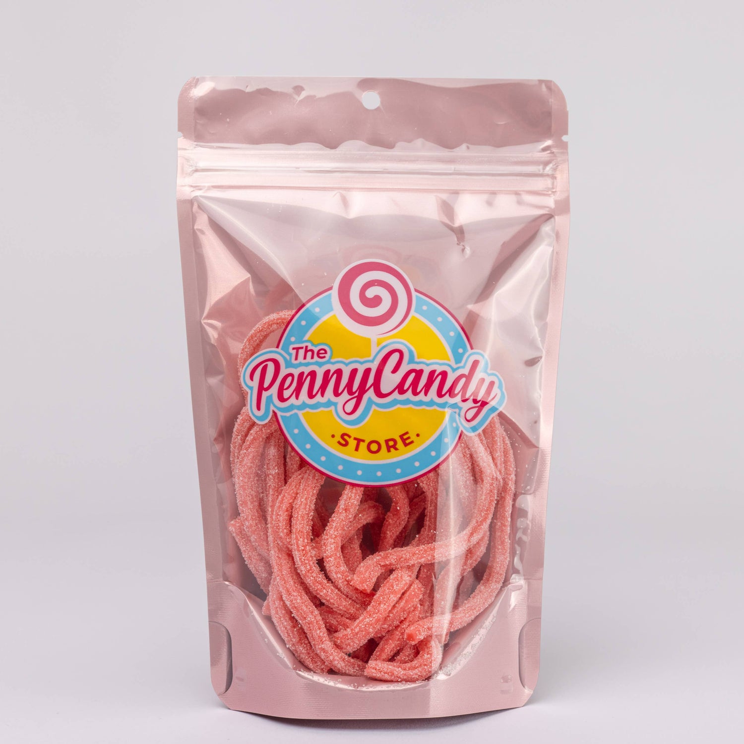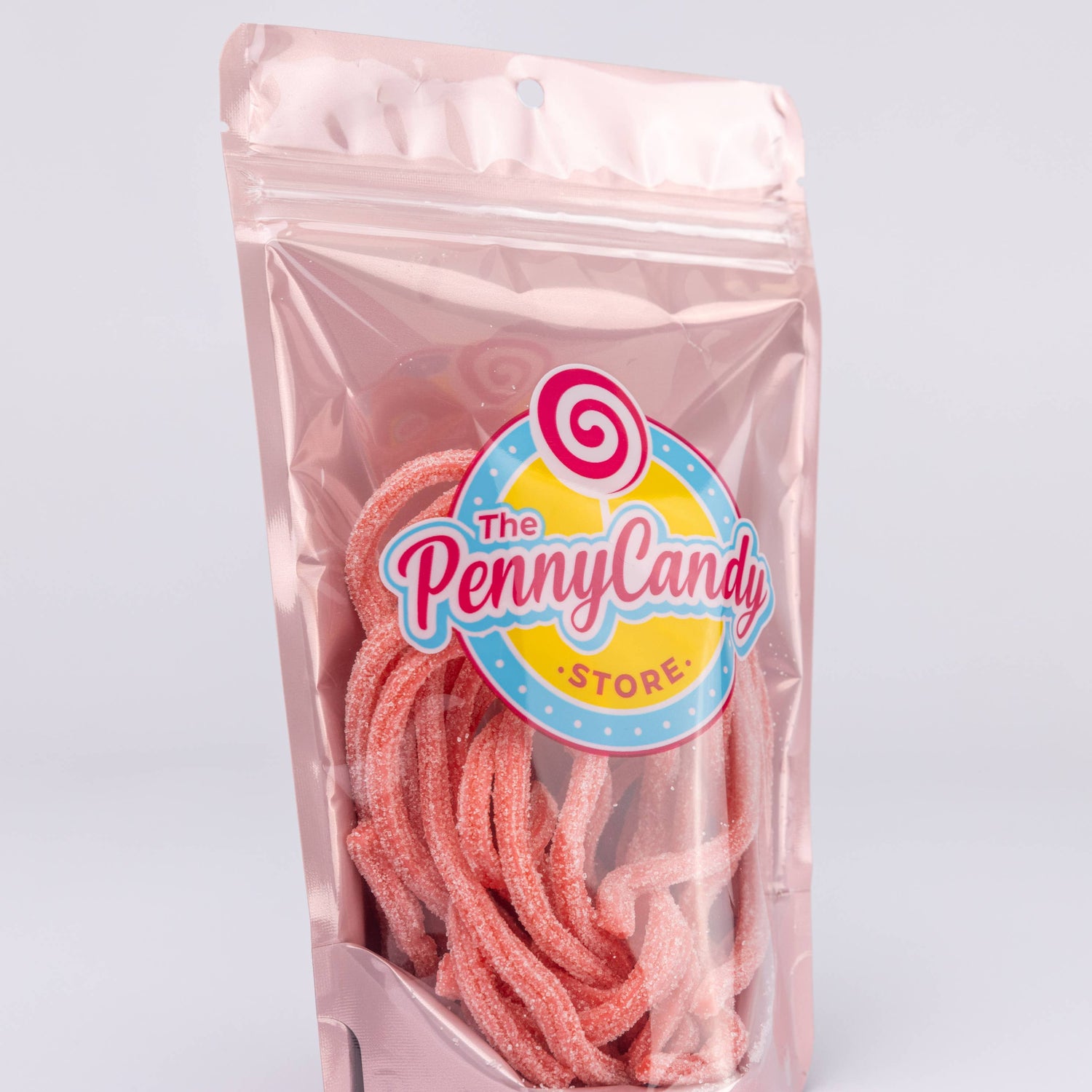 Packaged in a beautiful rose gold stand up bag, these sour pink lemonade straws are sure to be a hit! 4 oz bag!