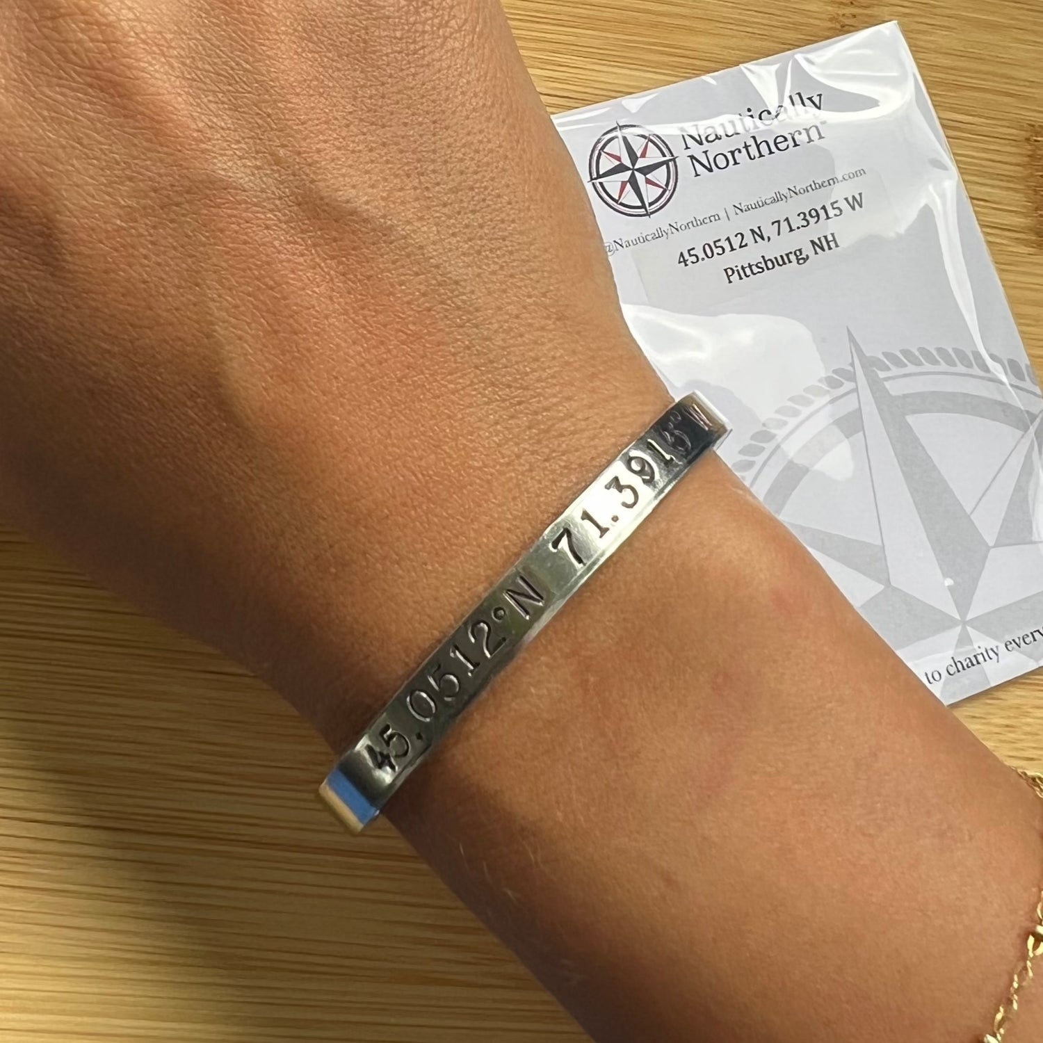 Show off your Pittsburg town pride with our latitude and longitude cuff.