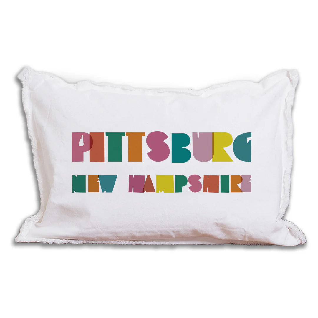 - Features a fun multicolored "Pittsburg, New Hampshire" graphic.