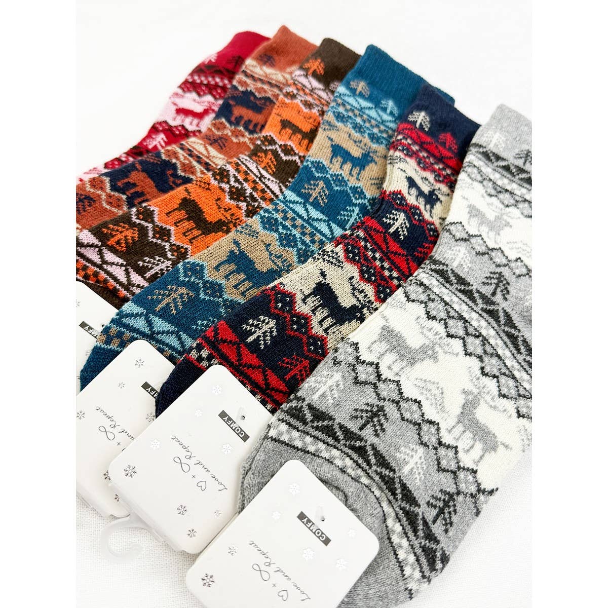 Reindeer Print Cozy Cabin Socks -Reindeer Print Cabin Socks are made of high quality fabric, soft to wear, breathbable and high elasticity. Slipper socks keep feet warm even on the coldest of days, fluffy socks can help you better enjoy your winter indoor time