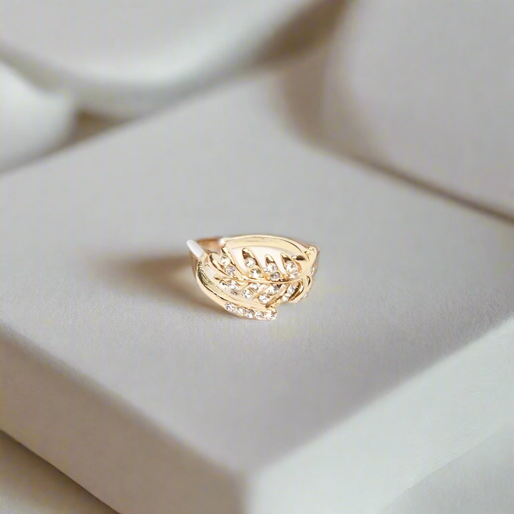 Rhinestone Leaf Ring