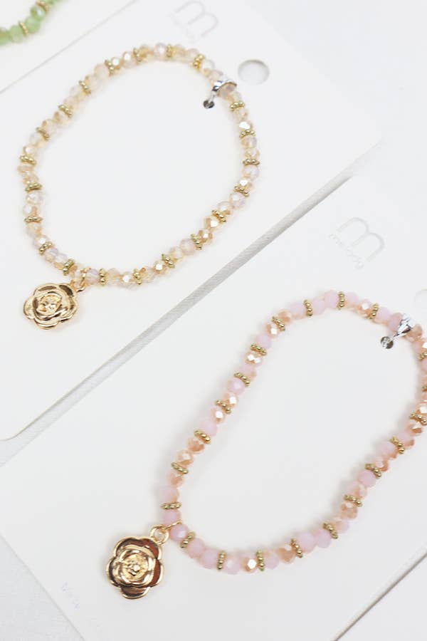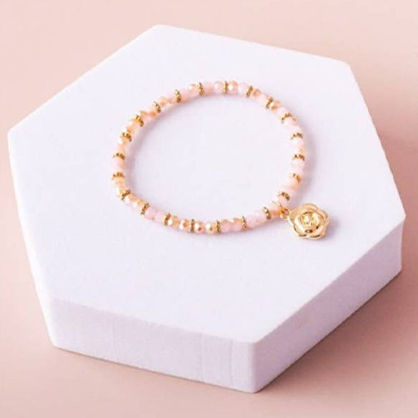 Rose Charm Crystal Bead Bracelet