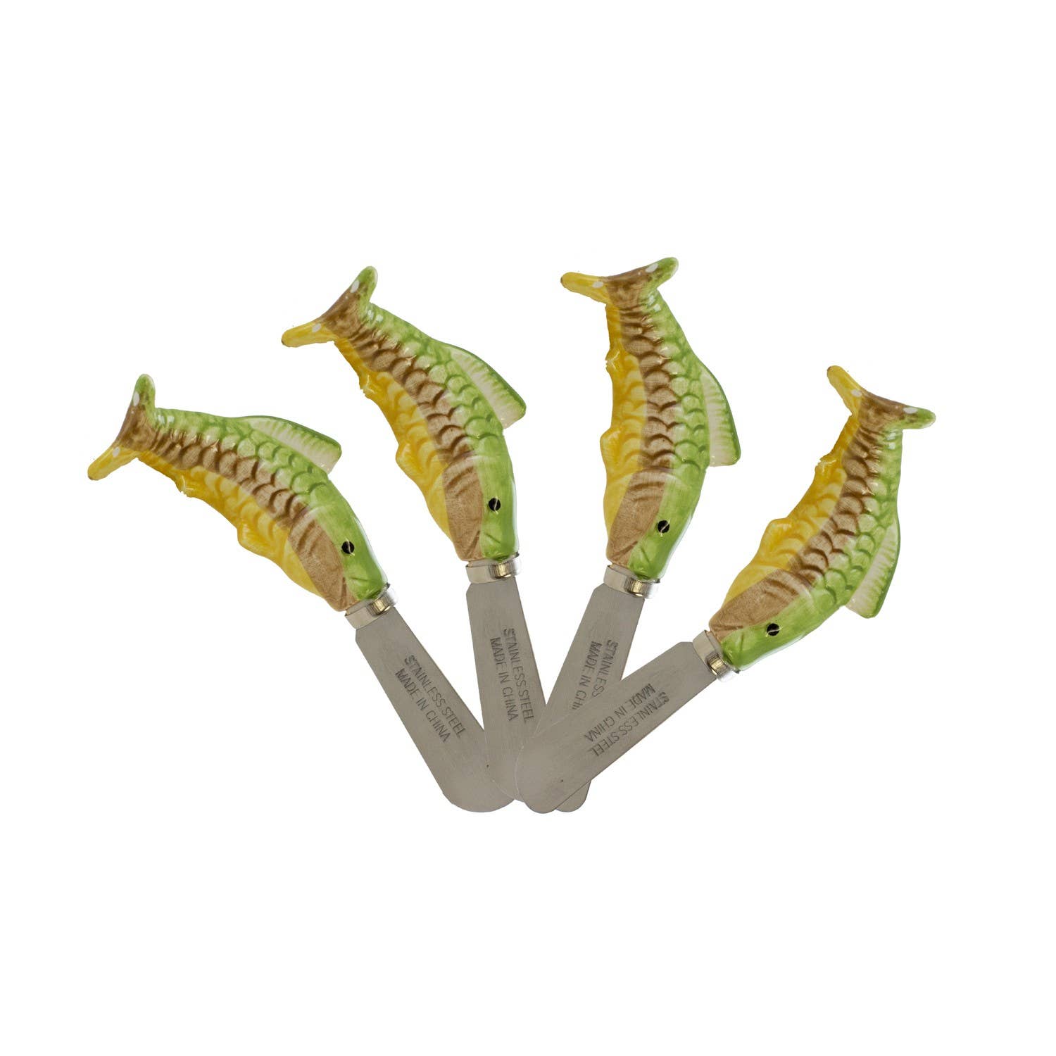 Dive into entertaining with these ceramic cheese spreaders. Each spreader features a charming fish-shaped handle, adding coastal flair to your appetizer presentation. Perfect for serving cheeses, dips, or spreads.