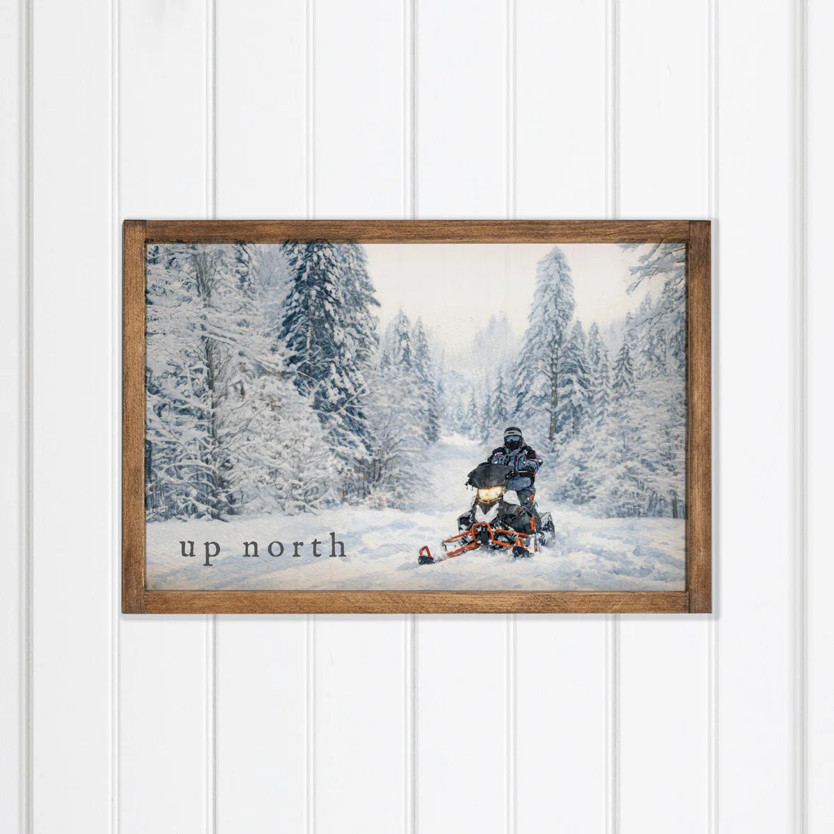Snowmobile Winter Scene - 13" x 19" Wood Sign