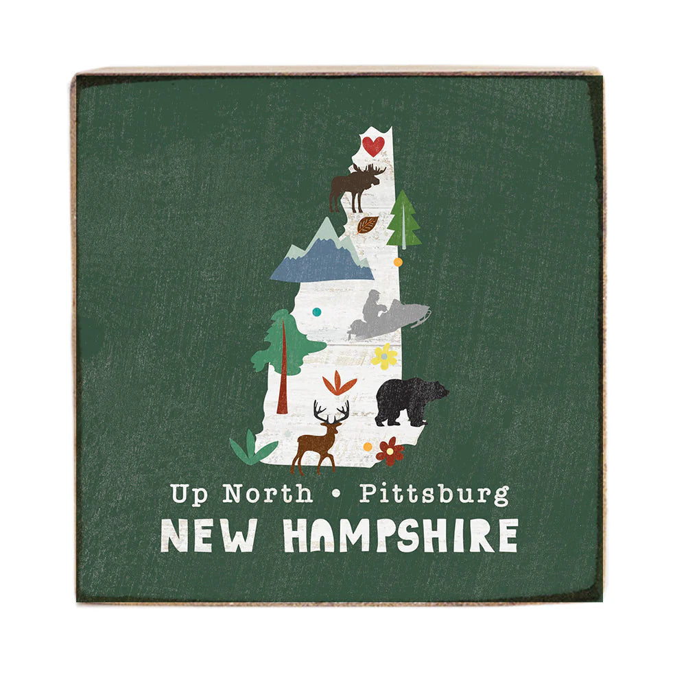 The State Cute Icons - Square Wood Block Sign is the perfect gift for any NH lover! This Decorative Wooden Block will add character to any shelf or tabletop. Put a little bit of your personality on display on your mantel, bookcase or desk. Handcrafted of solid pine, this item is made to last with a vintage look.
