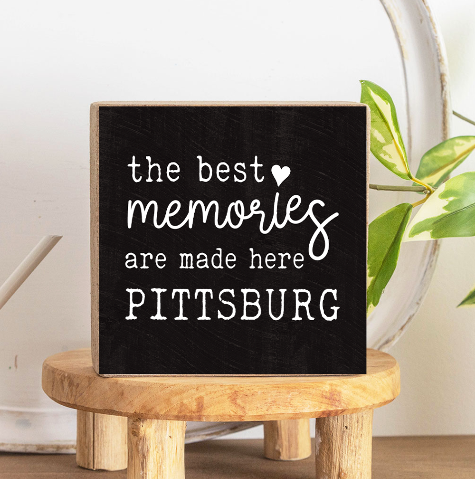 The Best Memories block Sign is the perfect gift for any Pittsburg fanatic! This Decorative Wooden Block will add character to any shelf or tabletop. Put a little bit of your personality on display on your mantel, bookcase or desk. Handcrafted of solid pine, this item is made to last with a vintage look.