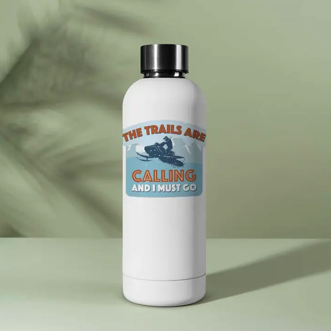 The Trails Are Calling funny snowmobiling bumper sticker, 3.5" high.
