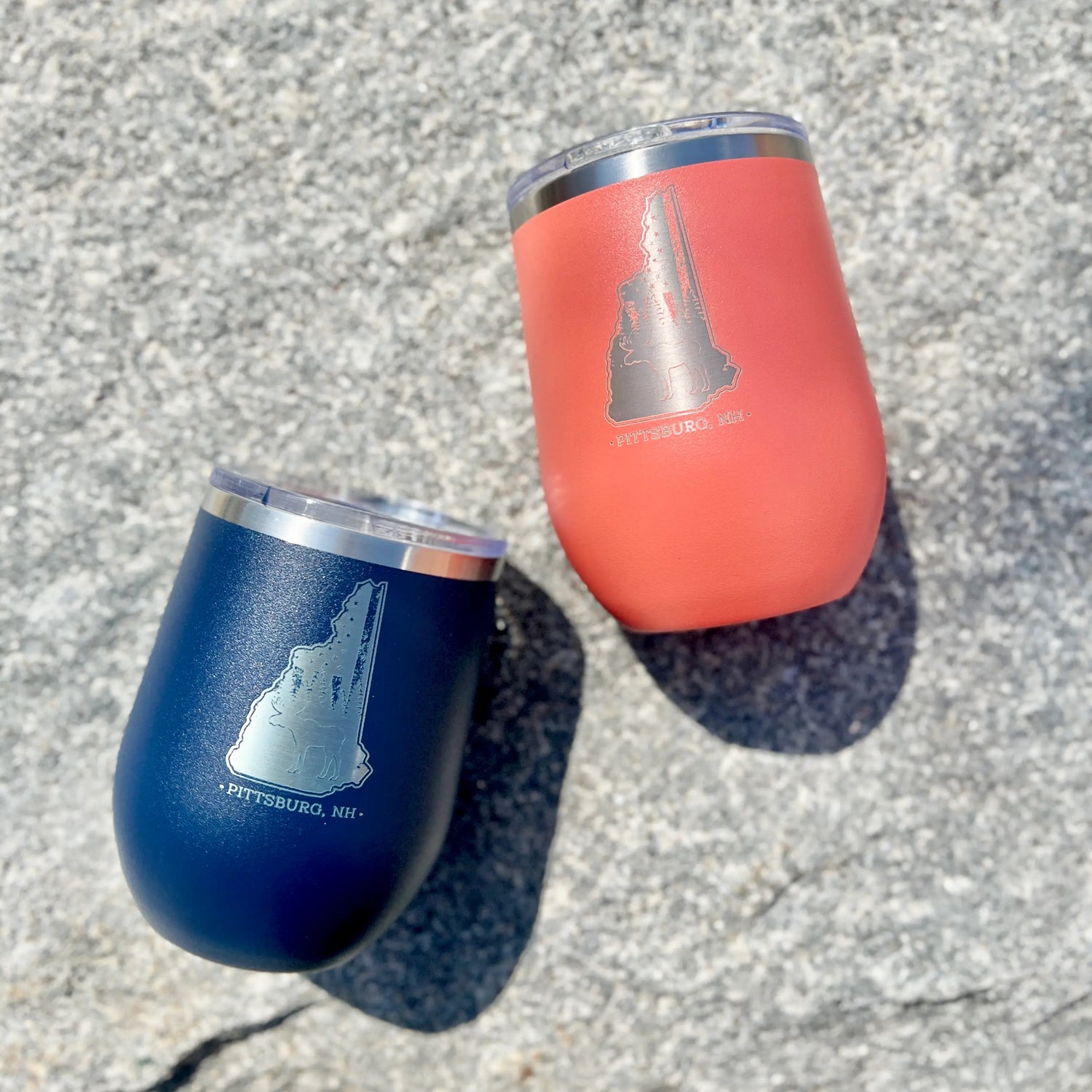 • Up North logo on one side / custom NH state silhouette with flag, tree line and moose on the back side