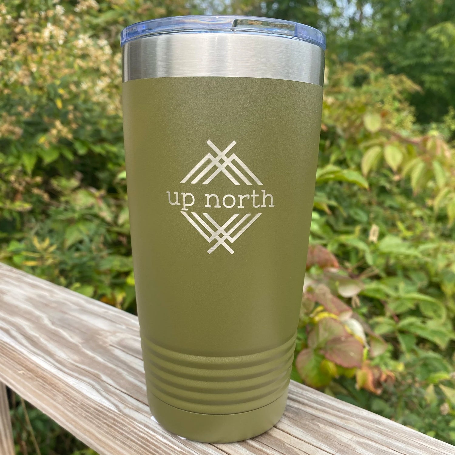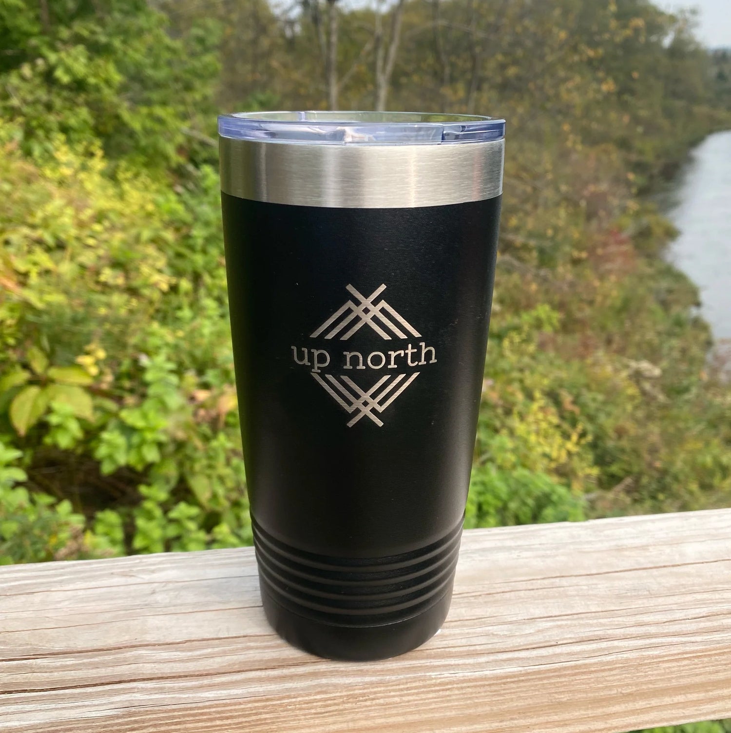 • Up North logo on one side / custom NH state silhouette with flag, tree line and moose on the back side
