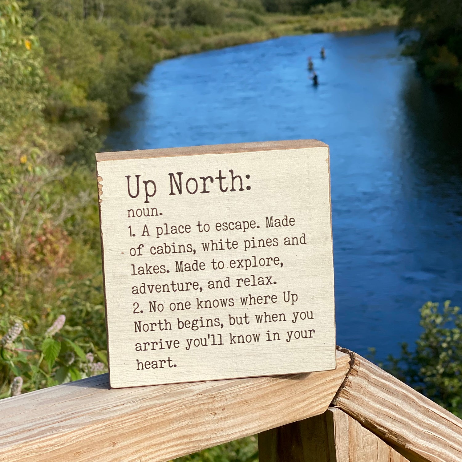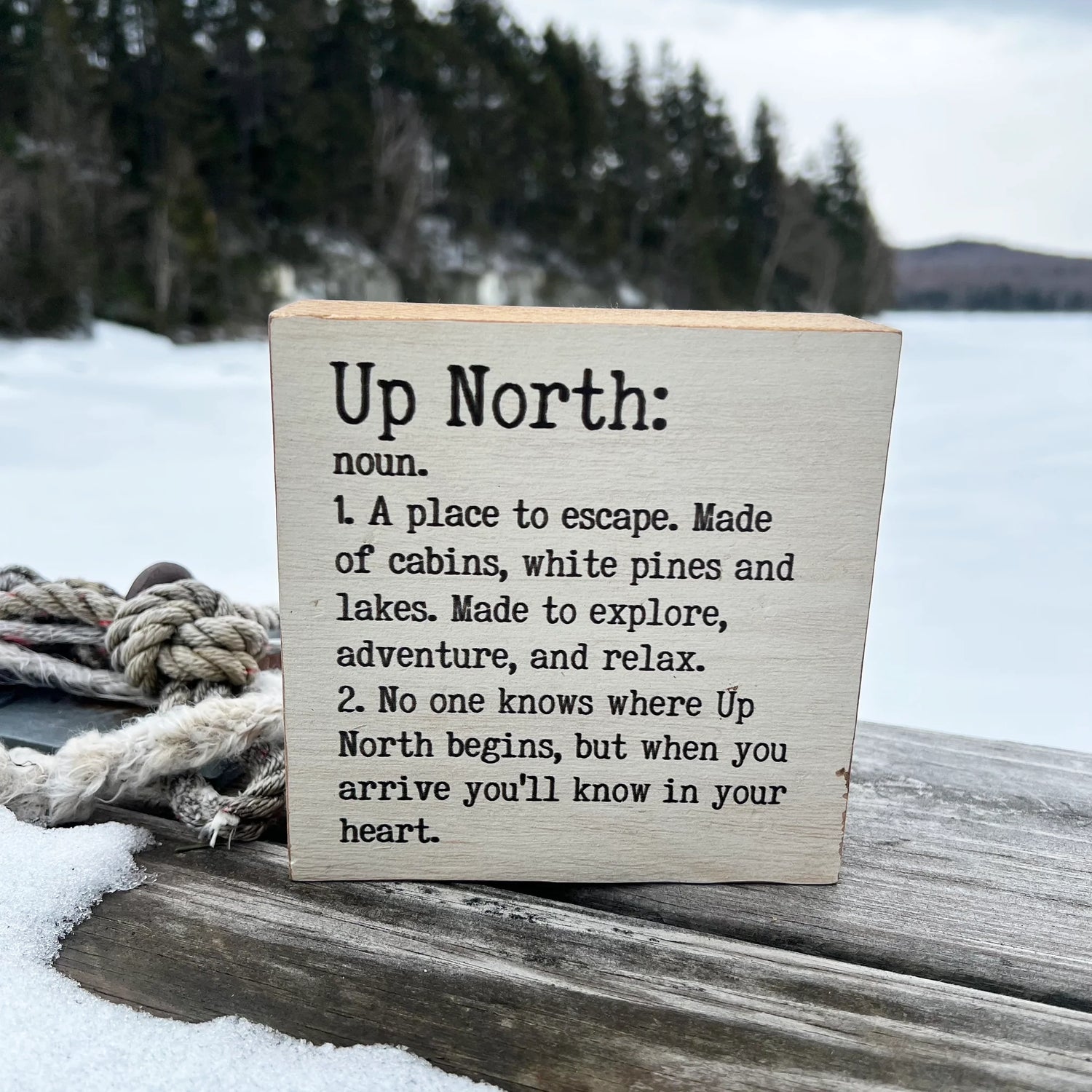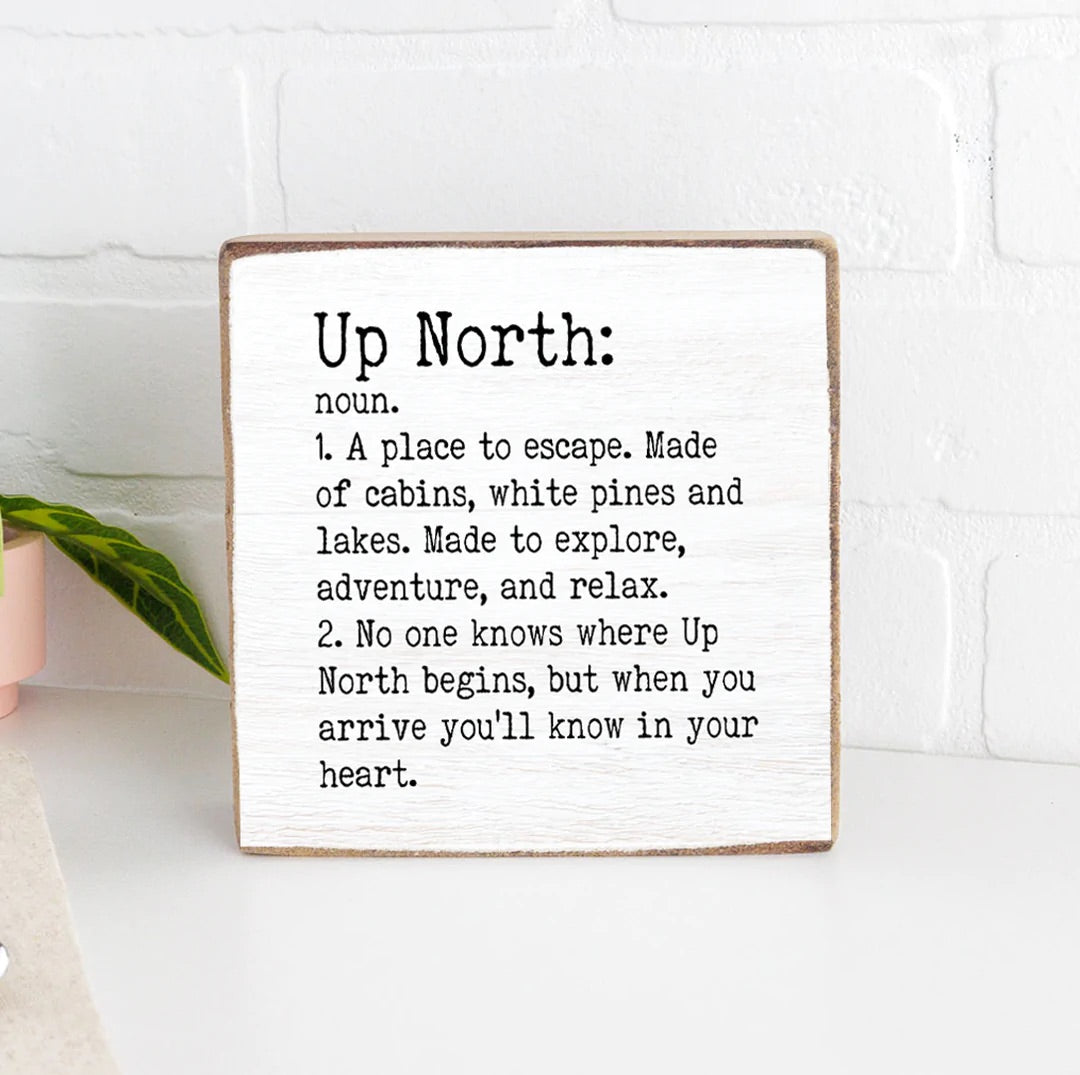 Up North Definition Decorative Wooden Block will add character to any shelf or tabletop. Put a little bit of your personality on display on your mantel, bookcase or desk. Handcrafted of solid pine, this item is made to last and makes the perfect gift for anyone New Hampshire, hunting, or outdoors lover!