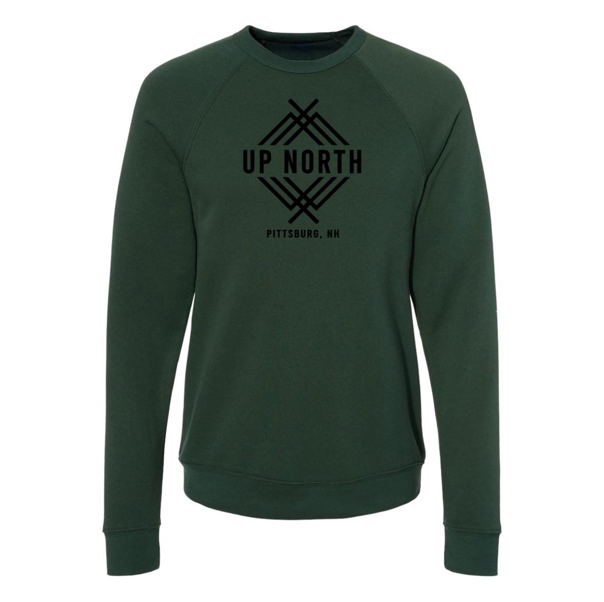 One touch and you will be hooked on Special Blend fleece! Completed with our quality construction, raglan sleeves, self fabric side panel inserts, and 1x1 ribbing at cuffs and waistband in a slim unisex fit. Features an Up North, Pittsburg, NH logo screen printed at center front.