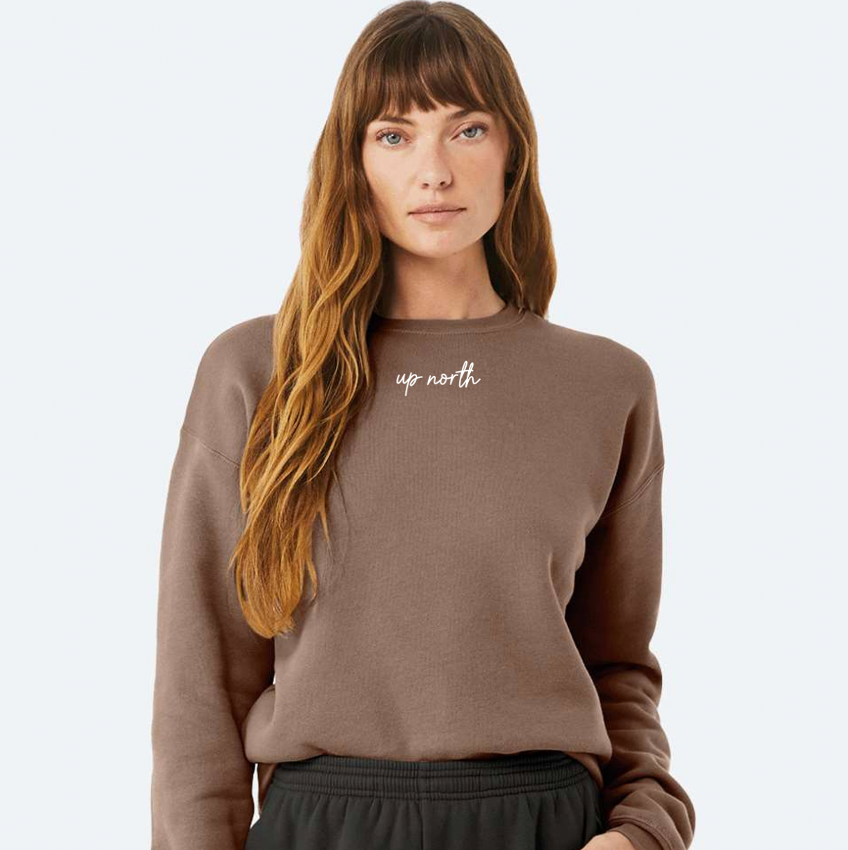 Up North Script - Ultra Soft Fleece Crewneck - Coffee Brown